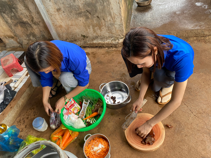 Chuẩn bị các món cho bữa cơm với mẹ Việt Nam anh hùng
