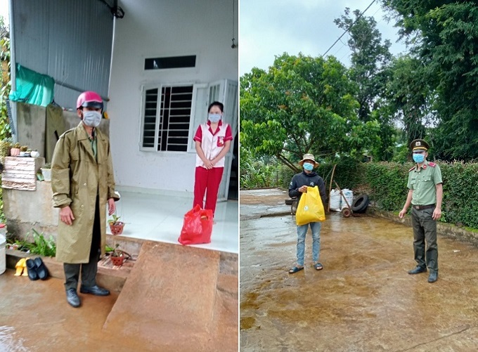 Các đoàn thể Công an thị xã Buôn Hồ tặng quà hỗ trợ người dân khó khăn bởi dịch bệnh Covid-19