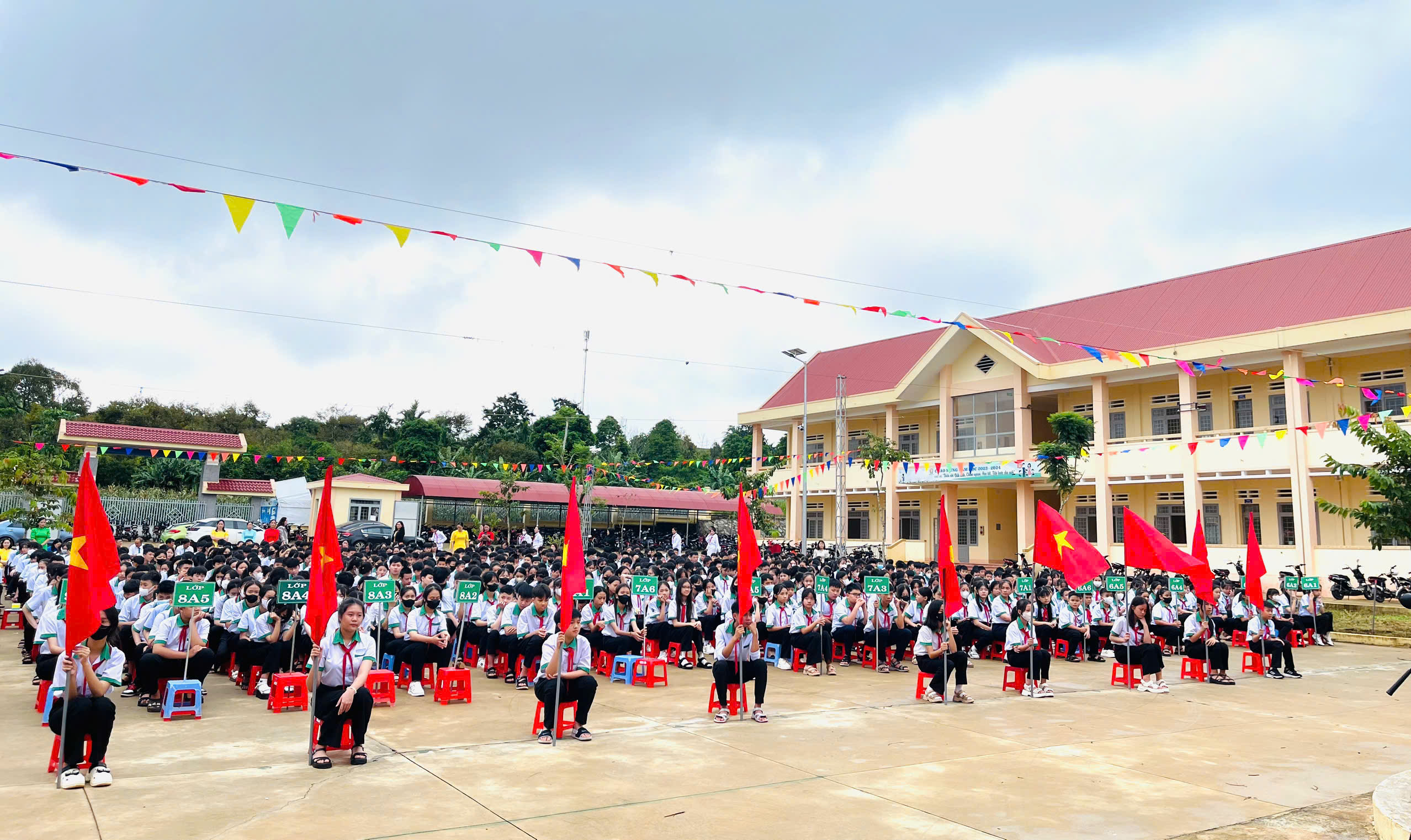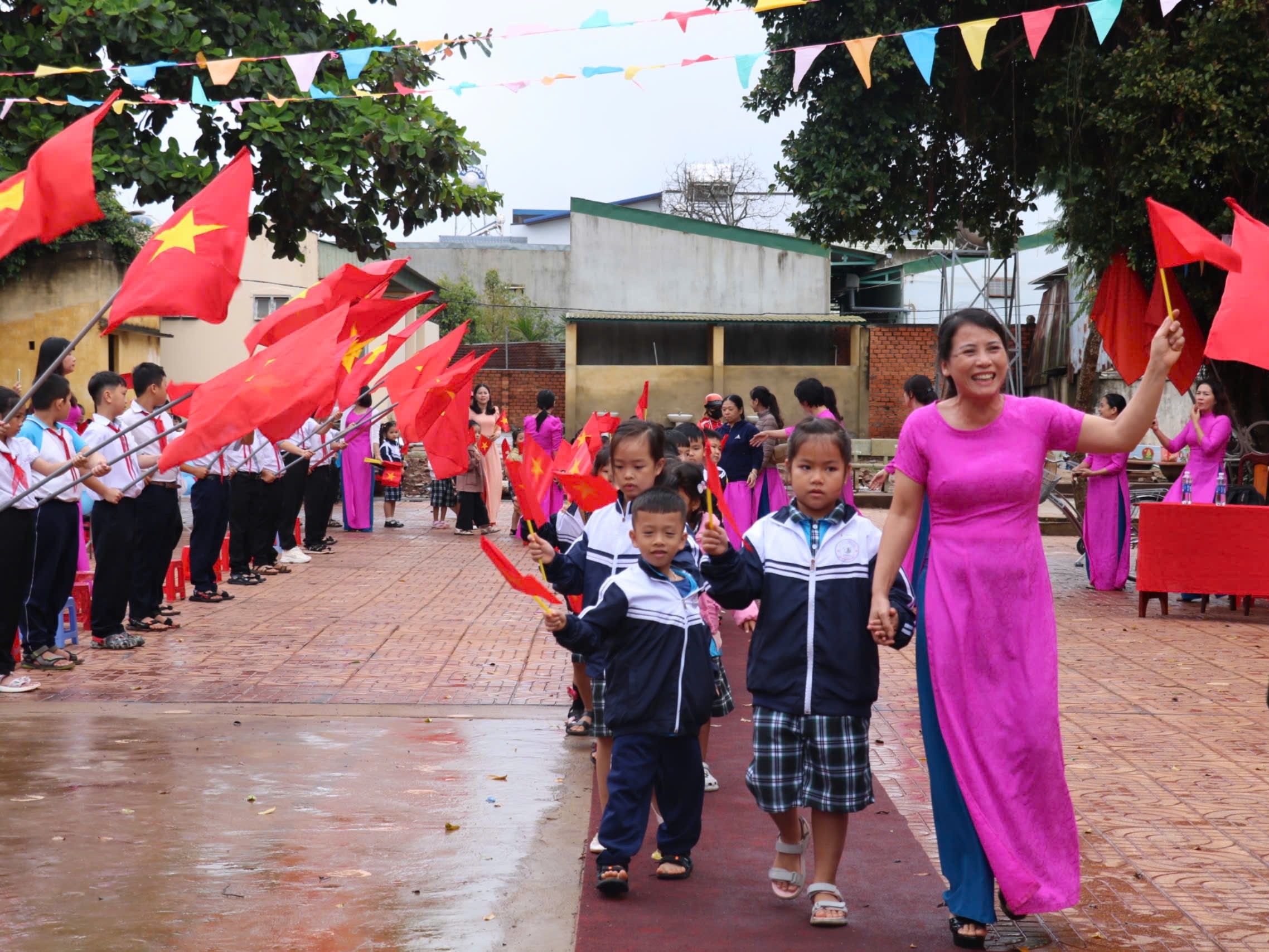 Các trường rực rỡ màu cờ trong ngày khai giảng