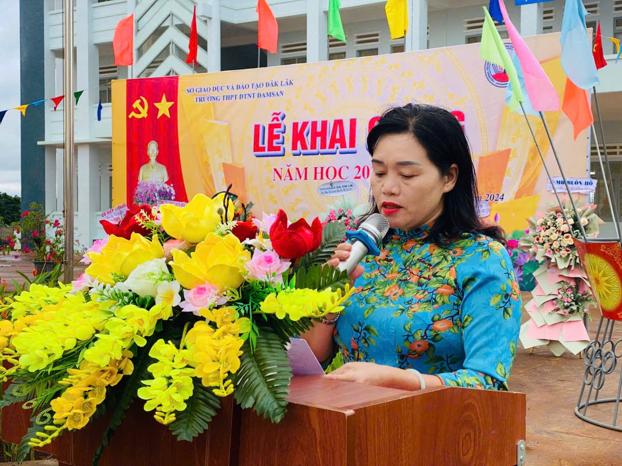 Tại trường THPT Dân tộc nội trú Đam San, đồng chí H’Blă Mlô – Phó Bí thư Thị ủy, Chủ tịch HĐND thị xã đọc thư chúc mừng năm học mới của Tổng Bí thư, Chủ tịch Nước Tô Lâm