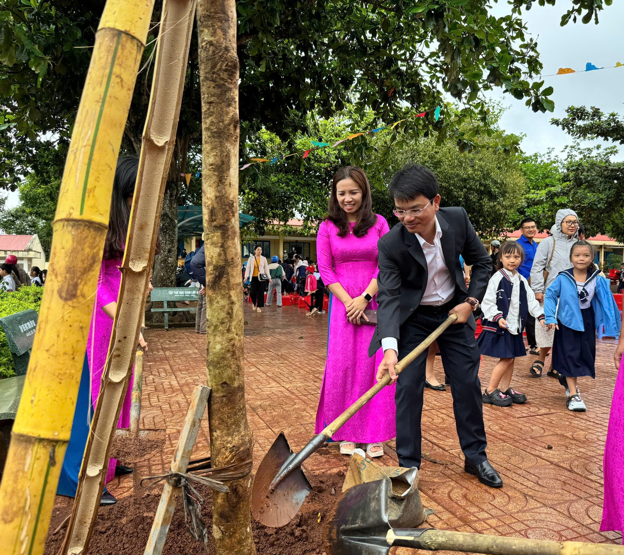 Đồng chí Đặng Gia Duẩn – Phó Bí thư Thị ủy, Chủ tịch UBND dự Lễ khai giảng và trồng cây lưu niệm tại trường Tiểu học Quang Trung