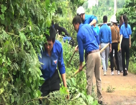 Cán bộ, đoàn viên và nhân dân tham gia phát quang bụi rậm, dọn dẹp vệ sinh
