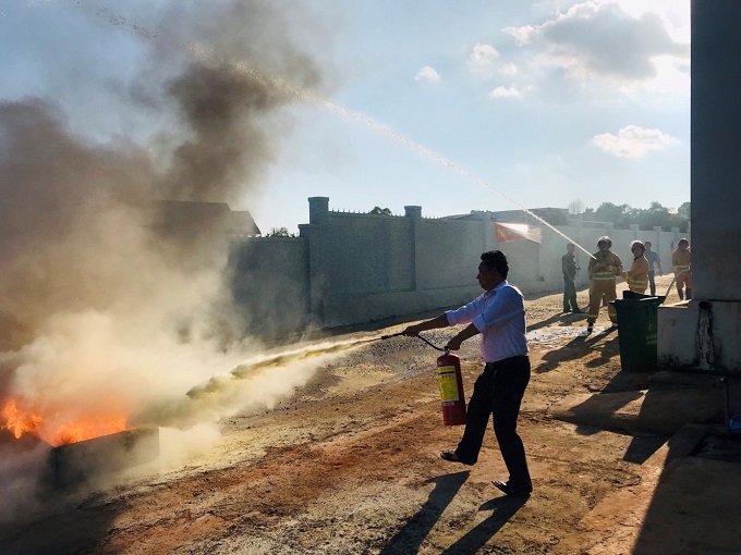 Công an thị xã Buôn Hồ hướng dẫn Bệnh viện đa khoa thị xã tổ chức thực tập phương án chữa cháy năm 2019