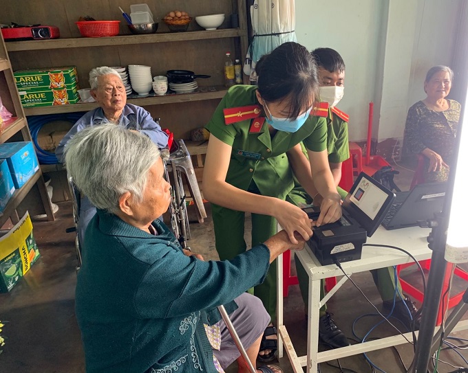 Cán bộ chiến sỹ Công an thị xã tổ chức làm CCCD tận nhà cho người già, người tàn tật