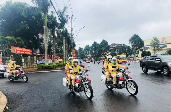 Cán bộ chiến sỹ Công an thị xã Buôn Hồ tăng cường tuần tra, kiểm soát đảm bảo trật tự an toàn giao thông