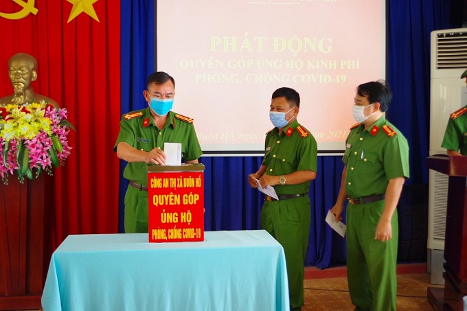Công an thị xã Buôn Hồ phát động quyên góp ủng hộ quỹ phòng chống dịch Covid – 19