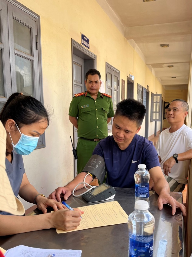Bác sỹ thực hiện đo huyết áp cho phạm nhân