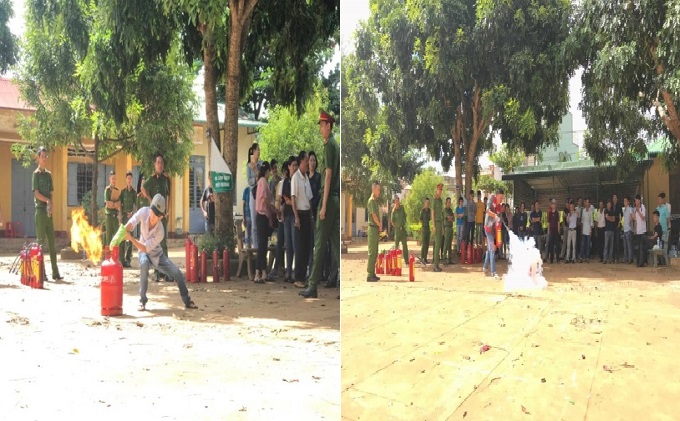Cán bộ PCCC hướng dẫn thực hành kỹ năng sử dụng bình PCCC