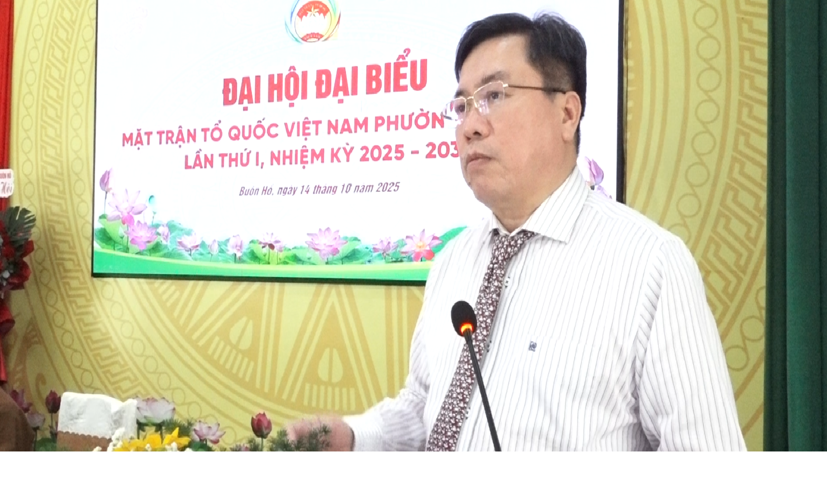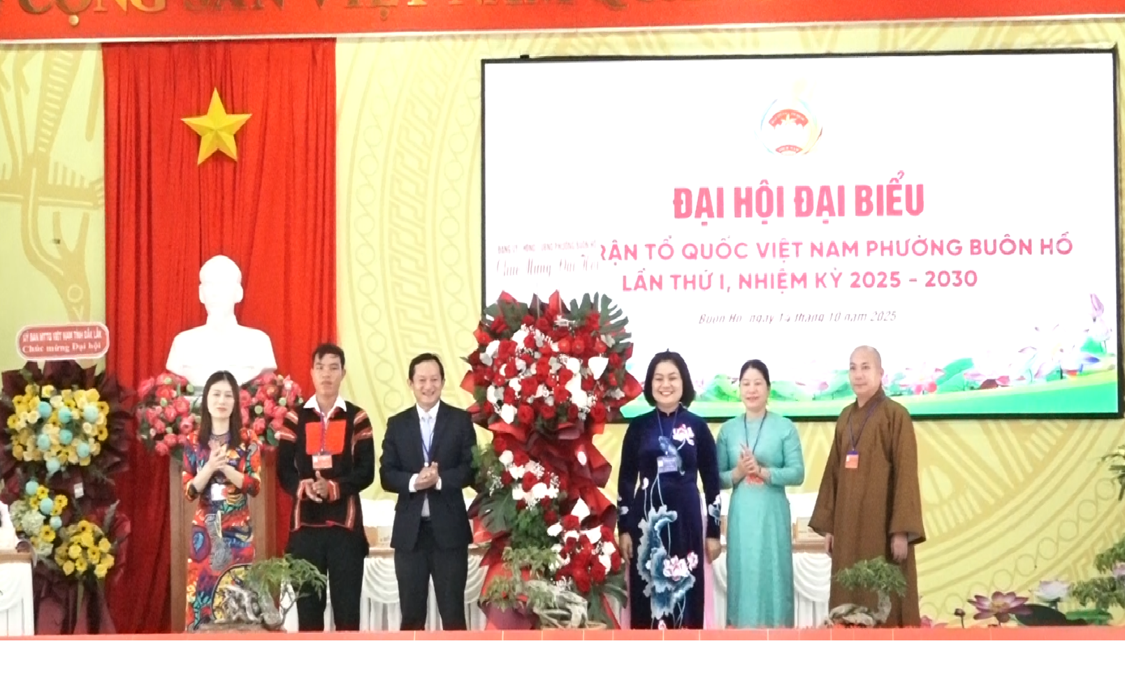 Sáng ngày 14/10, Ủy ban MTTQ Việt Nam phường Buôn Hồ tổ chức Đại hội đại biểu lần thứ I, nhiệm kỳ 2025–2030. Tham dự Đại hội có Uỷ viên Ban Thường vụ Tỉnh uỷ, Phó Chủ tịch Thường trực Ủy ban MTTQ Việt Nam tỉnh Đắk Lắk - Trần Hữu Thế; Uỷ viên Ban Thường vụ Tỉnh uỷ, Bí thư Đảng uỷ, Chủ tịch HĐND phường Buôn Hồ - H’Yim Kđoh; cùng các đồng chí thường trực Đảng ủy, Ban Thường vụ Đảng uỷ, lãnh đạo các phòng, ban, đoàn thể và 155 đại biểu chính thức, đại diện cho Khối đại đoàn kết toàn dân của phường.