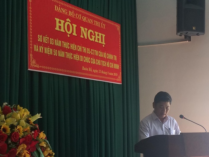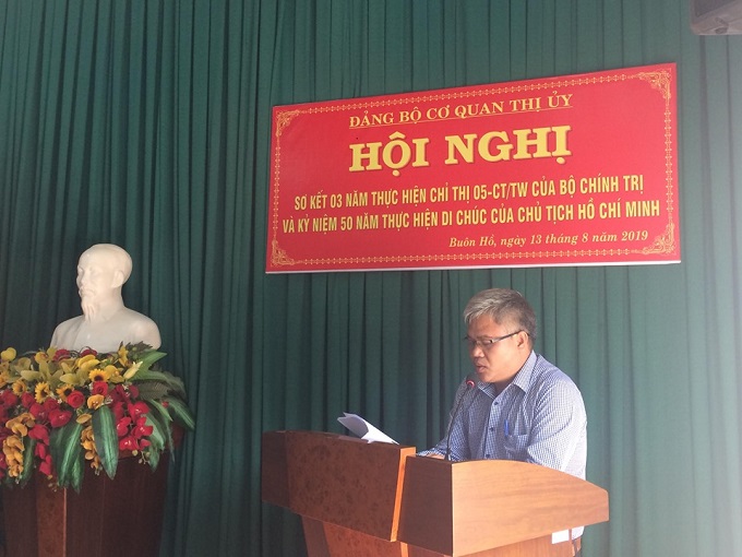 Chiều ngày 13/8/2019, Đảng bộ Cơ quan Thị ủy tổ chức Hội nghị sơ kết 03 năm thực hiện Chỉ thị 05-CT/TW của Bộ Chính trị gắn với kỷ niệm 50 năm thực hiện Di chúc của Chủ tịch Hồ Chí Minh và kỷ niệm 50 năm Ngày mất của Người (02/9/1969 - 02/9/2019).
