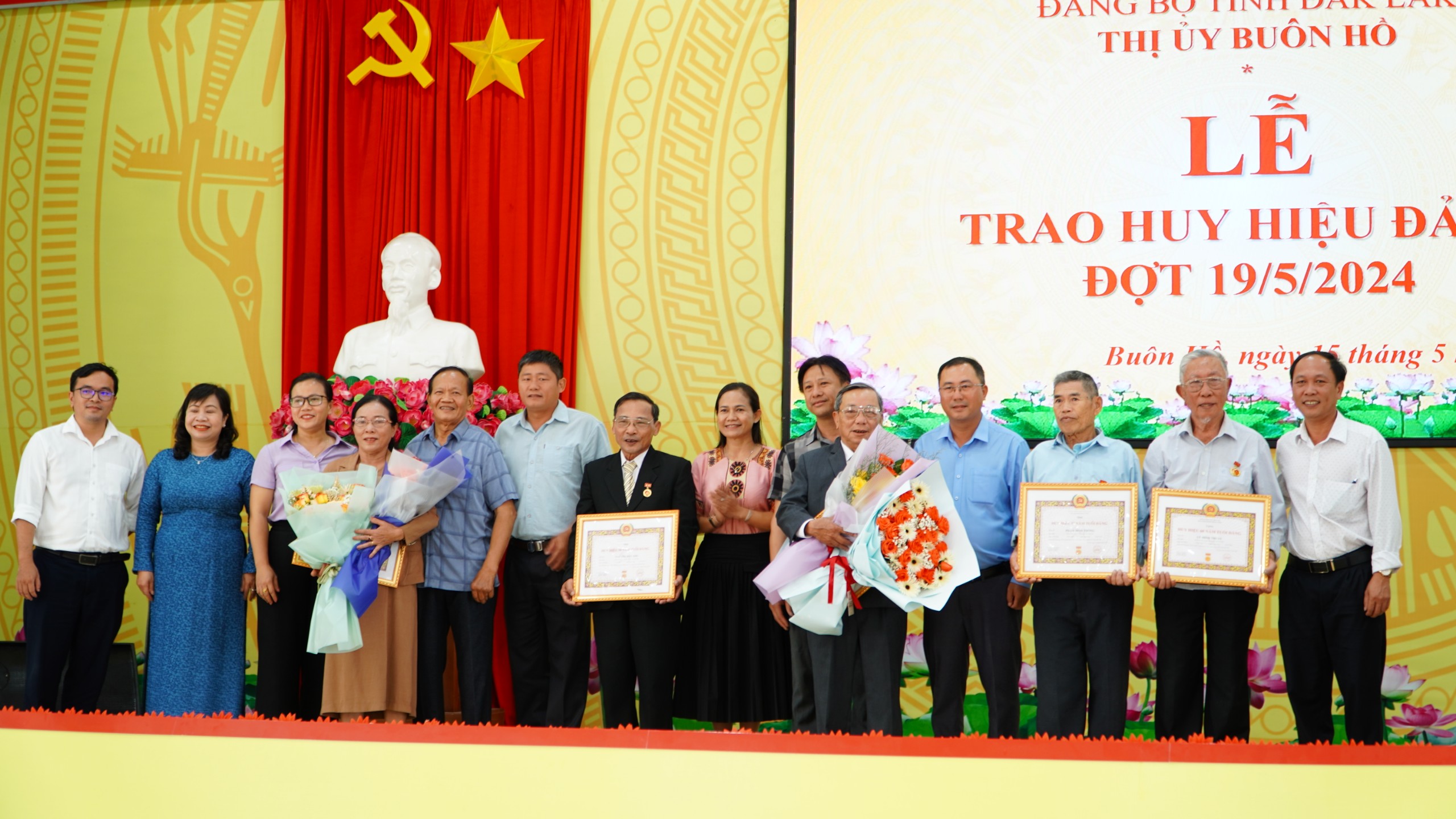 Nhân dịp này, Ban Thường vụ Thị ủy Buôn Hồ đã tổ chức trao tặng Huy hiệu Đảng Đợt 19/5/2024 của Ban Thường vụ Tỉnh ủy cho 6 đồng chí. Trong đó, có 2 đồng chí nhận huy hiệu 60 năm tuổi Đảng, 2 đồng chí nhận Huy hiệu 55 năm tuổi Đảng và 2 đồng chí nhận Huy hiệu 50 năm tuổi Đảng.