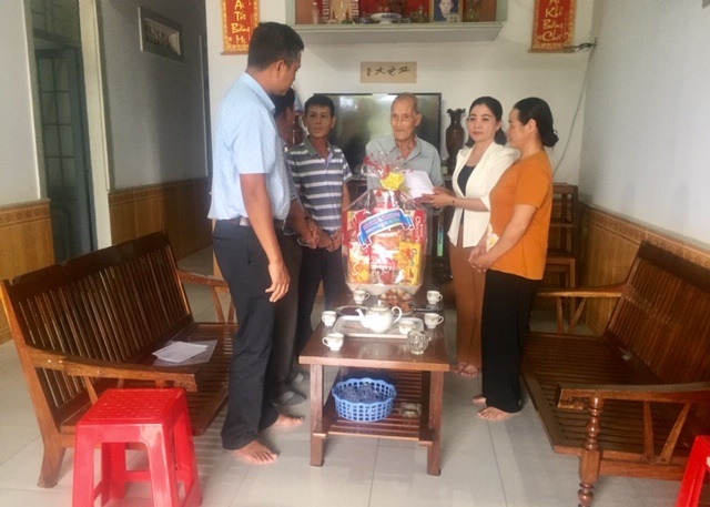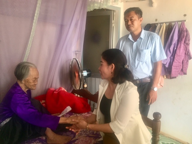 Đ/c Nguyễn Thị Thu Nguyệt – Tỉnh ủy viên, Bí thư Thị ủy thăm và tặng quà gđ ông Bế Ích Diệp thương binh 81% (xã Ea Drông).