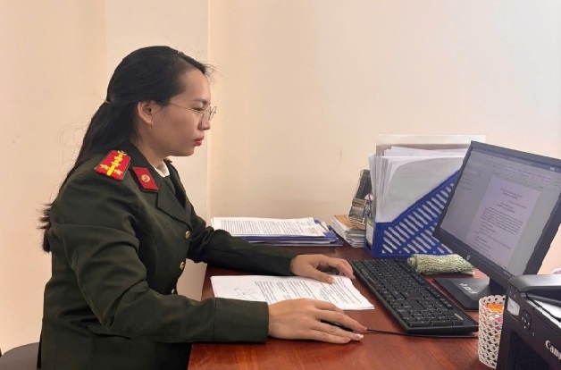 Đại úy Chu Thị Niềm – Chi hội trưởng Chi hội phụ nữ Công an phường miệt mài với công việc
