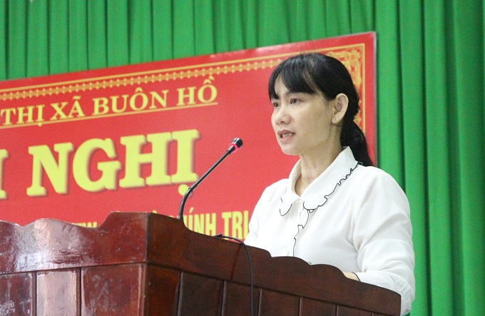 Phát hiểu tại hội nghị đồng chí Trần Thị Thu Hà, đại diện lãnh đạo Ban Tuyên giáo Tỉnh ủy và đồng chí Y Vinh Tơr, Tỉnh ủy viên, Bí thư Thị ủy ghi nhận những kết quả mà Đảng bộ đã đạt được trong thực hiện việc học tập và làm theo tư tưởng, đạo đức, phong cách Hồ Chí Minh giai đoạn 2016-2019; đồng thời, yêu cầu toàn Đảng bộ khắc phục những tồn tại, hạn chế và tiếp tục có các giải pháp hiệu quả để đưa việc học tập và làm theo tư tưởng, đạo đức, phong cách Hồ Chí Minh có chiều sâu, thực sự có hiệu quả trong thời gian tới. Đặc biệt các đơn vị, địa phương cần làm tôt công tác thông tin, tuyên truyền và phát động các phong trào thi đua trong dịp 2/9.