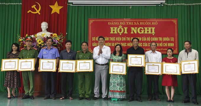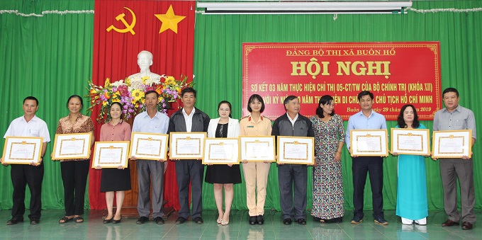 Sáng ngày 29/8/2019, Ban Thường vụ Thị ủy Buôn Hồ tổ chức Hội nghị sơ kết 03 năm thực hiện Chỉ thị 05-CT/TW của Bộ Chính trị gắn với kỷ niệm 50 năm thực hiện Di chúc của Chủ tịch Hồ Chí Minh. Tham dự hội nghị có gần 100 đại biểu là đại diện lãnh đạo Ban Tuyên giáo Tỉnh ủy; các đồng chí Ủy viên Ban Chấp hành Đảng bộ thị xã; đại diện lãnh đạo các phòng, ban và đơn vị tương đương; Bí thư, Phó bí thư các TCCS Đảng trực thuộc Thị ủy; Chủ tịch HĐND, UBND, Ủy ban MTTQVN các xã, phường; các tập thể, cá nhân được khen thưởng trong việc học tập và làm theo tư tưởng, đạo đức, phong cách Hồ Chí Minh, giai đoạn 2016-2019; phóng viên Báo Đắk Lắk và Đài Truyền thanh – Truyền hình thị xã đến dự, đưa tin.