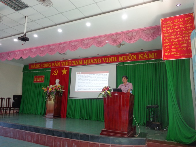 Đồng chí Nguyễn văn Út, UVTV, Trưởng Ban tuyên giáo Thị ủy quán triệt Nghị quyết