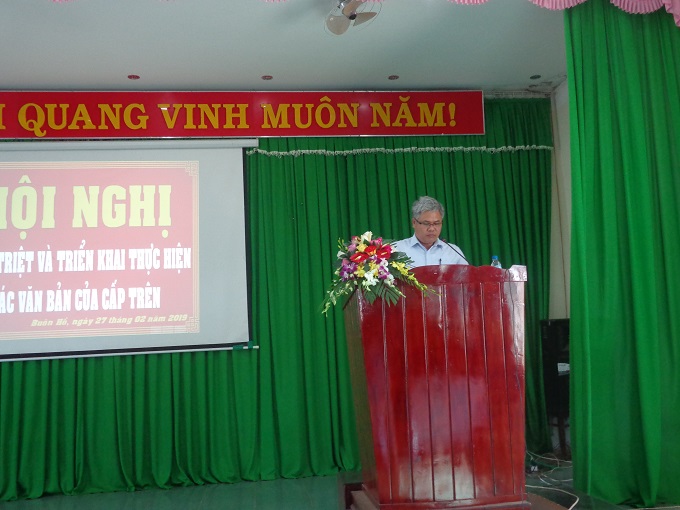 Thực hiện Hướng dẫn số 76-HD/BTGTU ngày 03/01/2019 của Ban Tuyên giáo Tỉnh ủy Đăk Lăk và kế hoạch của Ban thường vụ Thị ủy Buôn Hồ về “Tổ chức học tập, quán triệt các văn bản của Trung ương”. Chiều ngày 27/02/2019 tại Hội trường trung tâm Bồi dưỡng chính trị thị xã, Thị ủy Buôn Hồ đã tổ chức Hội nghị quán triệt các Nghị quyết, kết luận và kế hoạch của Trung ương và Tỉnh ủy cho đội ngũ cán bộ chủ chốt của thị xã. Tham dự hội nghị có đồng chí Y Vinh Tơr, Tỉnh ủy viên, Bí thư Thị ủy, các đồng chí Ủy viên Ban Chấp hành Đảng bộ thị xã khóa XV, Báo cáo viên Thị ủy, lãnh đạo các cơ quan tham mưu giúp việc Thị ủy, ủy viên UBKT Thị ủy, trưởng (phó) các phòng, ban, ngành, Mặt trận và các đoàn thể thị xã, bí thư (phó bí thư) các TCCS Đảng, chủ tịch HĐND, UBND các xã, phường.