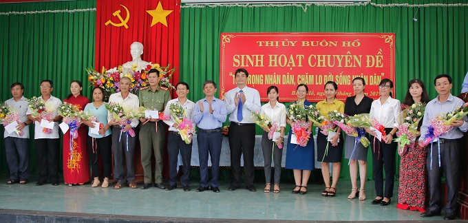 Sáng ngày 15/5/2019, Ban Thường vụ Thị ủy Buôn Hồ tổ chức Sinh hoạt chuyên đề học tập và làm theo tư tưởng, đạo đức, phong cách Hồ Chí Minh với chủ đề: “Tôn trọng Nhân dân, chăm lo đời sống Nhân dân” nhằm thiết thực chào mừng kỷ niệm 129 năm Ngày sinh Chủ tịch Hồ Chí Minh. Tham dự buổi sinh hoạt có gần 200 đại biểu là đại diện lãnh đạo Ban Tuyên giáo Tỉnh ủy; các đồng chí Ủy viên Ban Chấp hành Đảng bộ thị xã Buôn Hồ khóa XV; bí thư, phó bí thư các TCCS Đảng trực thuộc Thị ủy; trưởng, phó các cơ quan, ban, ngành, mặt trận, các đoàn thể thị xã và tương đương; các đồng chí Chủ tịch HĐND, UBND, Ủy ban MTTQ Việt Nam các xã, phường; các đồng chí được trao huy hiệu 45 năm tuổi Đảng trở lên; cá nhân được biểu dương trong việc học tập và làm theo tư tưởng, đạo đức, phong cách Hồ Chí Minh dịp 19/5 và Phóng viên Báo Đắk Lắk, Đài Truyền thanh – Truyền hình thị xã đến dự, đưa tin.