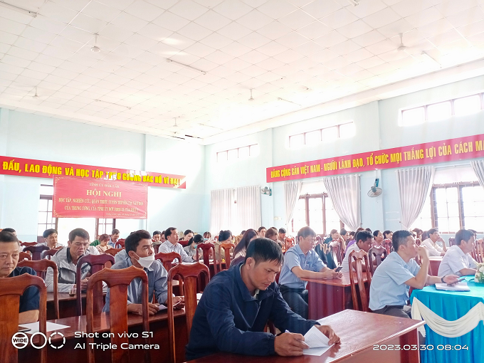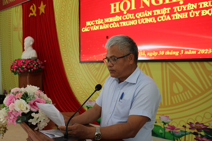 Đ/c Nguyễn Văn Út - Báo cáo viên Tỉnh ủy, UVBTV, Trưởng Ban Tuyên giáo, Giám đốc Trung Tâm Chính trị thị xã quán triệt các nội dung của Đảng bộ thị xã