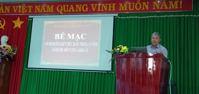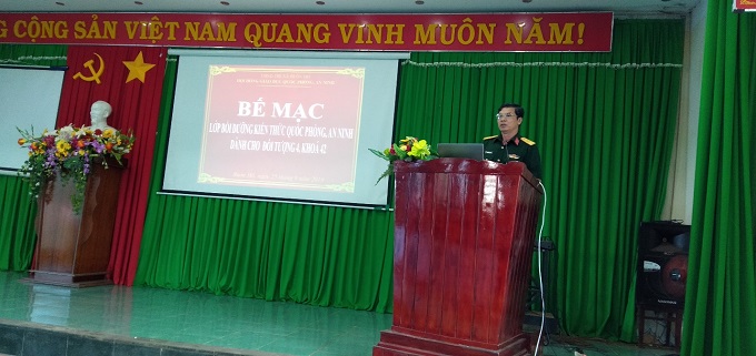 Chiều ngày 25/9/2019, Hội đồng Giáo dục Quốc phòng và An ninh Thị xã tiến hành bế mạc lớp bồi dưỡng kiến thức quốc phòng và an ninh cho đối tượng 4, khoá 42. Đến dự có đồng chí Nguyễn Văn Tuyên – TUV, Chỉ huy trưởng Ban Chỉ huy quân sự Thị xã, Phó Chủ tịch Thường trực Hội đồng Giáo dục Quốc phòng và An ninh Thị xã; đồng chí Nguyễn Văn Út – UVBTV, Trưởng Ban Tuyên giáo Thị uỷ, Giám đốc Trung tâm Bồi dưỡng Chính trị Thị xã, Thành viên Hội đồng Giáo dục Quốc phòng và An ninh Thị xã và các giảng viên tham gia giảng dạy của khoá học.