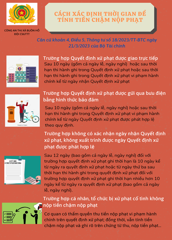 3. Cách xác định thời gian để tính tiền chậm nộp phạt: Quy định tại Khoản 4, Điều 5, Thông tư 18/2023/TT-BTC