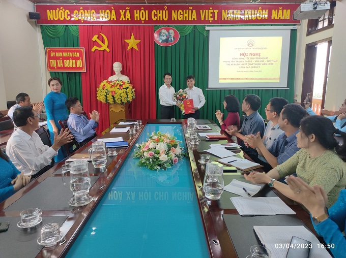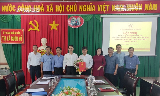 UBND thị xã Buôn Hồ công bố Quyết định thành lập Trung tâm Truyền thông – Văn hóa – Thể thao và Quyết định viên chức lãnh đạo quản lý.