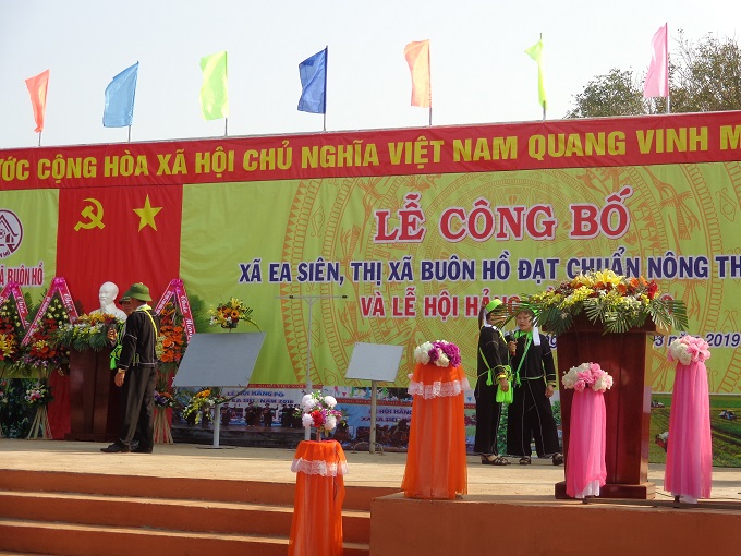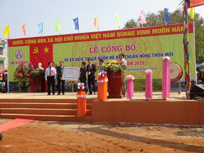 Sáng ngày 04/3/2019, trong không khí tưng bừng của lễ hội Hảng pồ (đây là lễ hội của đồng bào Tày, Nùng xã Ea Siên mang từ phía bắc vào, thường xuyên được duy trì và tổ chức vào ngày 28 tháng giêng hàng năm). UBND thị xã Buôn Hồ đã long trọng tổ chức lễ công bố quyết định của UBND tỉnh về việc xã Ea Siên đạt chuẩn Nông thôn mới (NTM). Tham dự buổi lễ có đồng chí Nguyễn Hoài Dương, Tỉnh ủy viên, Giám đốc sở Nông nghiệp và phát triển Nông thôn tỉnh Đăk Lăk; đồng chí Dương Tín Đức, phó Chánh văn phòng điều phối Nông thôn mới tỉnh. Về phía địa phương thị xã Buôn Hồ có đồng chí Y Vinh Tơr, Tỉnh ủy viên, Bí thư Thị ủy, đồng chí Phạm Phú Lộc, Phó Bí thư Thị ủy, chủ tịch UBND thị xã; đồng chí Ngô Trung Hiếu, Ủy viên BTV Thị ủy, Chủ tịch HĐND thị xã, các đồng chí trong BTV Thị ủy, HĐND, UBND, UBMTTQVN, lãnh đạo các ban ngành, đoàn thể thị xã Buôn Hồ và xã Ea Siên cùng đông đảo bà con nhân dân trong và ngoài xã.