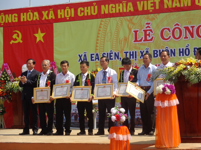 Tại lễ công bố, sau phần văn nghệ chào mừng và nghi lễ chào cờ, tuyên bố lý do, giới thiệu đại biểu, đồng chí Phạm Phú Lộc, phó Bí thư, chủ tịch UBND thị xã đã phát biểu chào mừng và khai mạc buổi lễ; lãnh đạo xã Ea Siên đã báo cáo tóm tắt kết quả thực hiện xây dựng NTM của xã; đồng chí Dương Tín Đức, phó Chánh văn phòng điều phối Nông thôn mới tỉnh đã công bố Quyết định của UBND tỉnh về việc công nhận xã Ea Siên đạt chuẩn NTM và Quyết định của UBND tỉnh tăng cờ thi đua cho xã Ea Siên đã hoàn thành chương trình mục tiêu NTM; đồng chí Nguyễn Hoài Dương, TUV, Giám đốc sở Nông nghiệp và phát triển Nông thôn tỉnh và đồng chí Y Vinh Tơ, TUV, Bí thư Thị ủy đã phát biểu, tặng hoa chúc mừng, đồng thời căn dặn cán bộ, nhân dân xã Ea Siên duy trì, giữ vững danh hiệu xã NTM; đại diện hộ gia đình trong xã đã phát biểu cảm tưởng. cảm ơn các cấp lãnh đạo tỉnh, sở ngành và lãnh đạo thị xã đã quan tâm đầu tư cho xã Ea Siên về dích NTM sớm hơn theo dự định và hứa sẽ cùng nhân dân trong xã tiếp tục duy trì và triển khai các chương trình do xã và thị xã phát động. UBMTTQVN xã đã phát động phong trào thi đua giữ vững danh hiệu xã NTM, xây dựng xã NTM nâng cao của xã. Cũng tại buổi lễ này, UBND thị xã tặng giấy khen cho 05 tập thể và 10 cá nhân đã có thành tích xuất sắc trong xây dựng NTM của xã.
