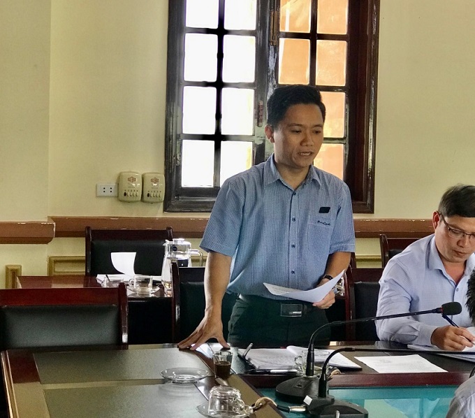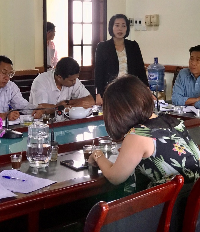 Bà Nguyễn Thị Trúc – Phó Trưởng phòng Tài nguyên và Môi trường thị xã báo cáo tình hình thực hiện Quyết định số 28/2016/QĐ-UBND ngày 01/7/2016 của UBND tỉnh